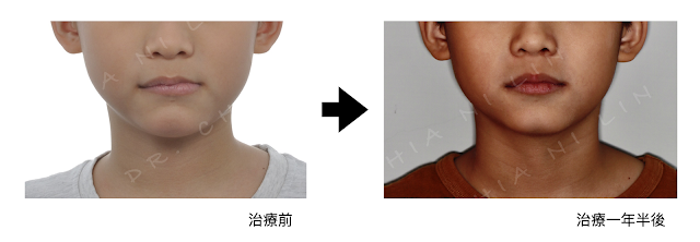 如果先幫他解決咬合的問題,並且合併肌肉訓練,不但咬合改善,臉型也會回正